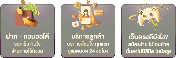 ตอบ : - มีโบนัสต้อนรับ 100%, เครดิตฟรี, แจกเครดิตคืนยอดเสีย, โบนัสฝากรายวัน และกิจกรรมแจกรางวัลพิเศษ